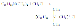 2、在以硅胶为载体的CuO/Cr2O3系催化剂的催化下,十六烷醇与二甲胺于一定温度和压力下合成十六烷基二甲基叔胺。再以氢氧钠为催化剂与一氯甲烷反应制得氯化十六烷基三甲基铵。